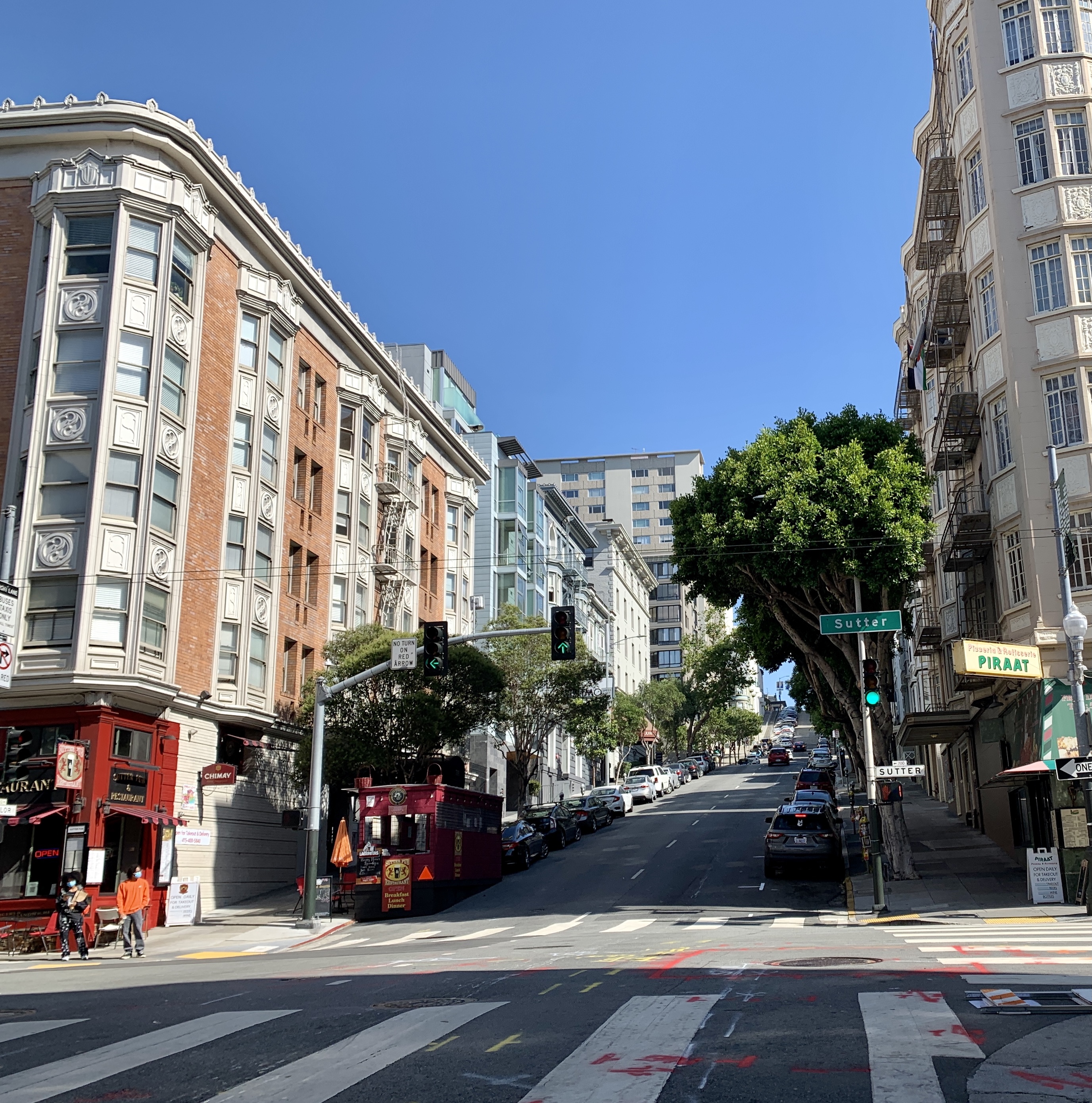 My husband and I are spending a few days in San Francisco. Streets built on rolling hills makes for interesting walks.