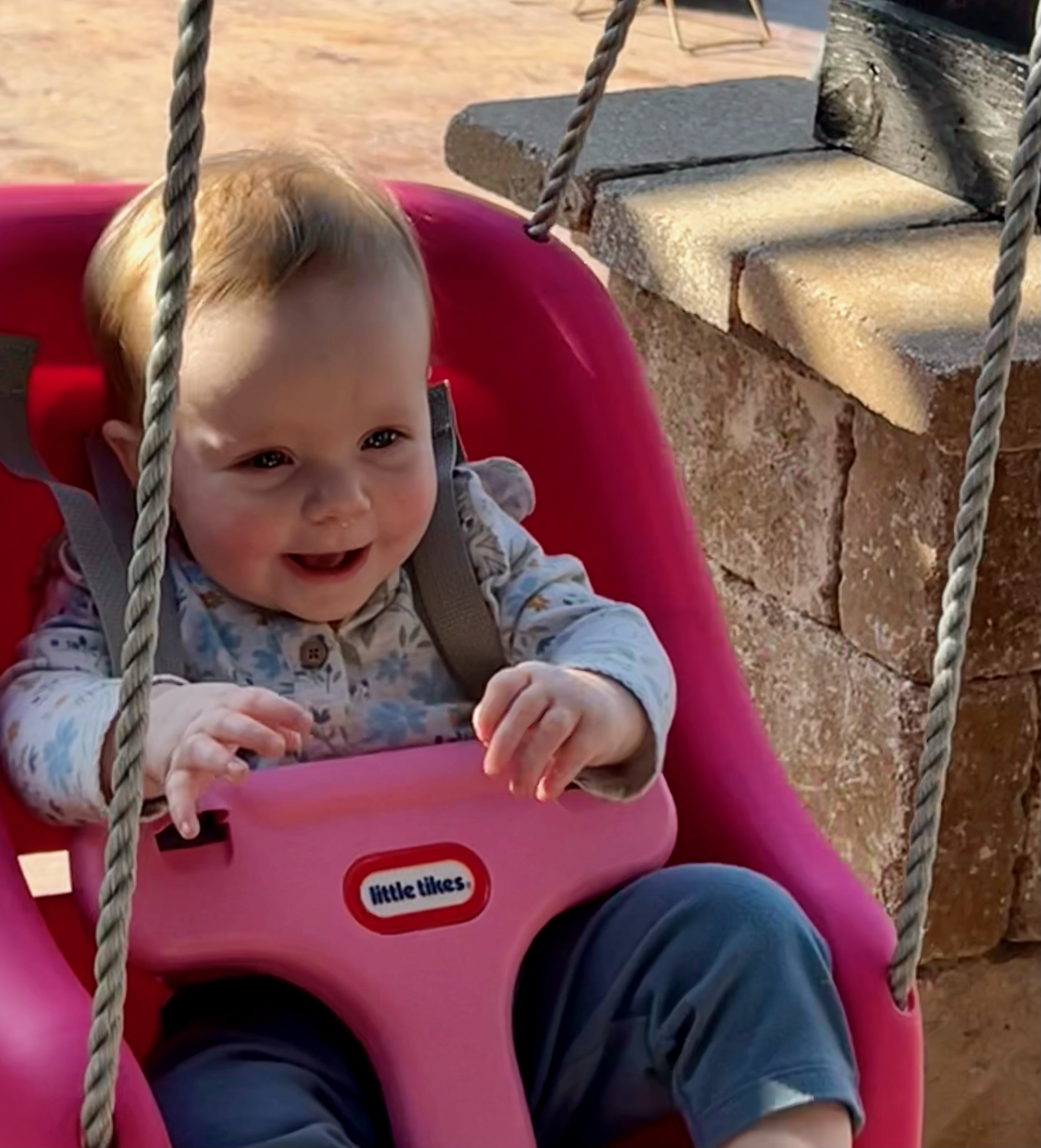 This girl! Even when she doesn’t feel 100 percent, she still has a smile. And I think she likes her swing. 😉💖